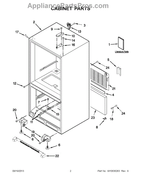 The Leveling Leg is an OEM replacement part for Whirlpool refrigerators. It is one of four legs situated internally at the base corners for proper tilt positioning. It raises or lowers each leg independently to stabilize units on uneven kitchen floors. Causes of replacement consist of wear from continual torque required during positioning processes. Thread damage or corrosion buildup attributable to floor locations over extended use necessitates periodic renewal as well. Symptoms involve: