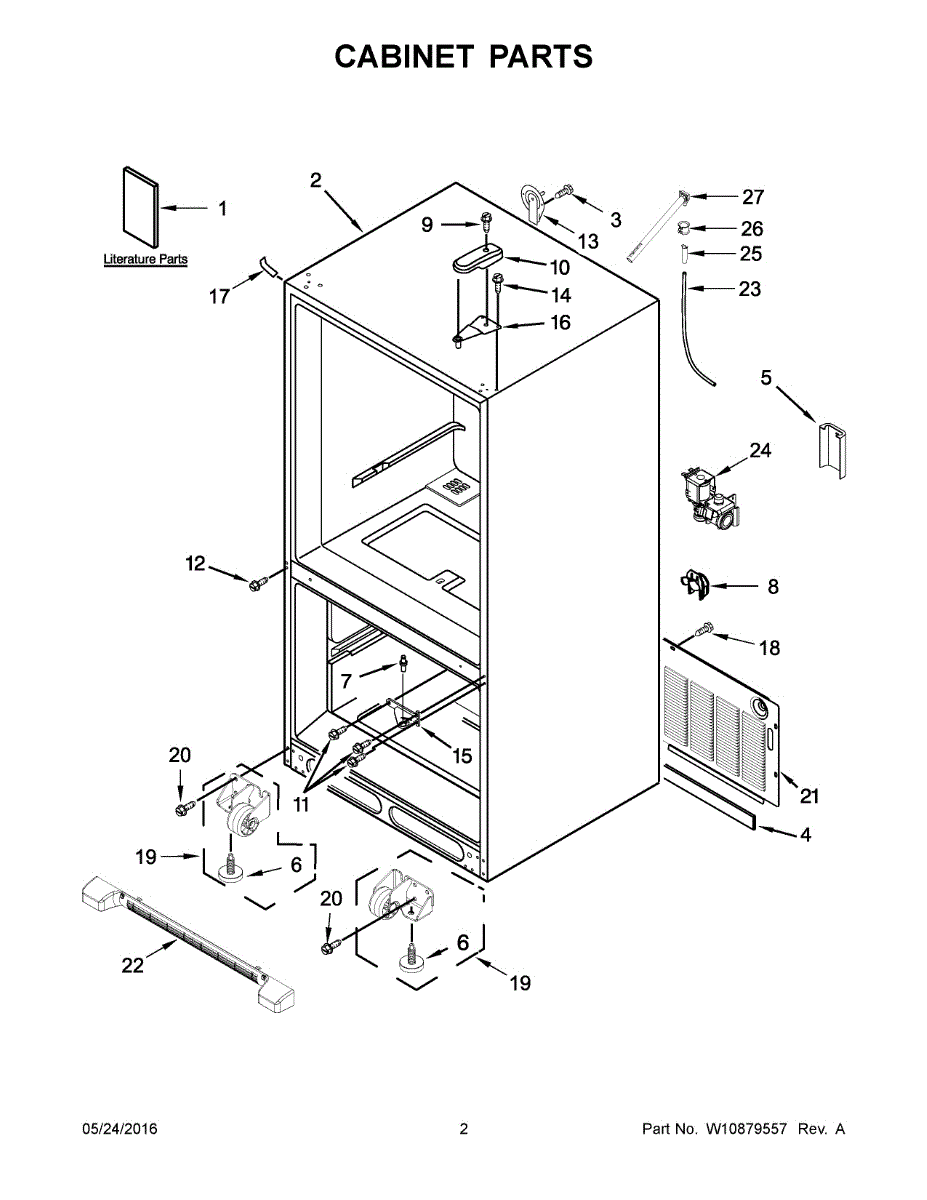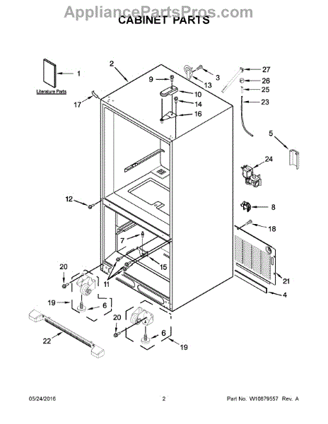 The Leveling Leg is an OEM replacement part for Whirlpool refrigerators. It is one of four legs situated internally at the base corners for proper tilt positioning. It raises or lowers each leg independently to stabilize units on uneven kitchen floors. Causes of replacement consist of wear from continual torque required during positioning processes. Thread damage or corrosion buildup attributable to floor locations over extended use necessitates periodic renewal as well. Symptoms involve:
