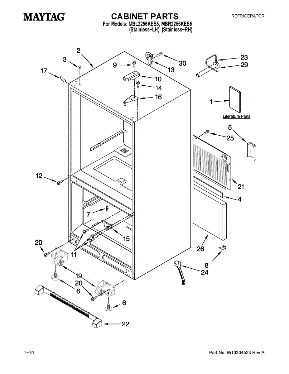 Parts for Maytag MBR2256KES5: Cabinet Parts