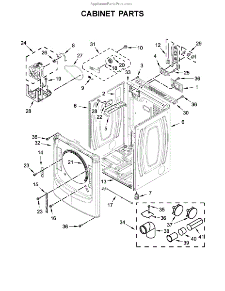 This exhaust pipe vents hot, moist air from the dryer to the home venting system, helping the appliance dry clothes efficiently and reduce indoor humidity. Replace a damaged or restricted pipe to restore proper airflow. What it does: