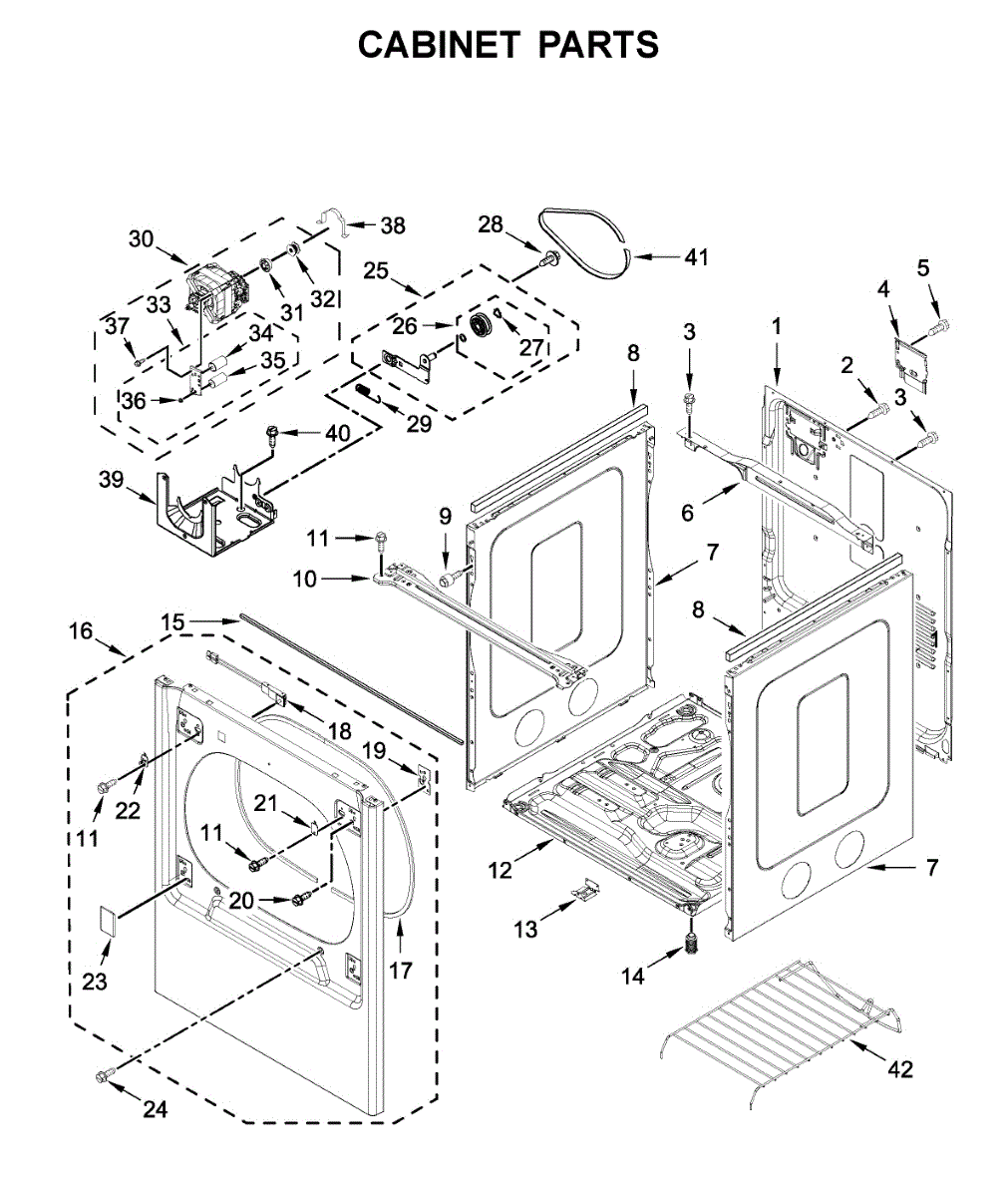 This lower cabinet base replaces a worn or damaged support panel that stabilizes the appliance and houses lower components. Restoring the base improves cabinet alignment and helps prevent vibration and under-cabinet damage. What it does: