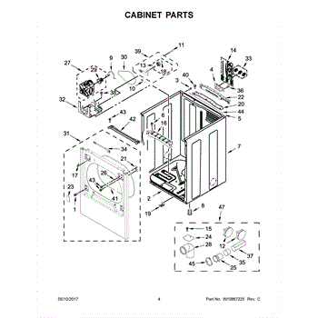 This exhaust cover plate protects and finishes the dryer's exhaust outlet, helping direct airflow and keeping the vent opening sealed from debris. It provides a clean, durable surface where the exhaust connects to the dryer cabinet. What it does:
