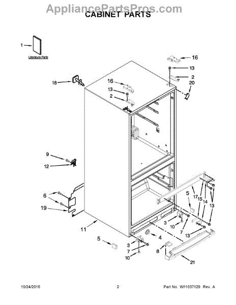 The Leveling Leg is an OEM replacement part for Whirlpool refrigerators. It is one of four legs situated internally at the base corners for proper tilt positioning. It raises or lowers each leg independently to stabilize units on uneven kitchen floors. Causes of replacement consist of wear from continual torque required during positioning processes. Thread damage or corrosion buildup attributable to floor locations over extended use necessitates periodic renewal as well. Symptoms involve: