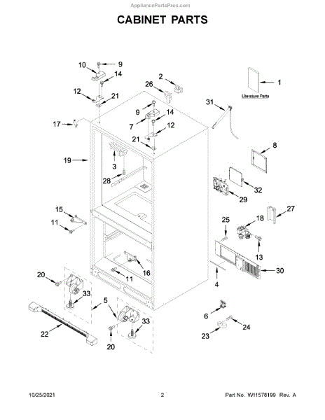 This hinge cover assembly conceals and protects the door hinge area, providing a clean look while shielding wiring and moving parts from dust and moisture. It restores proper coverage if the original cover is cracked, missing, or loose.