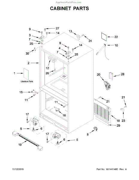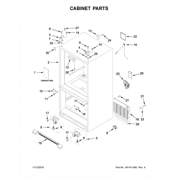 This hinge cover assembly conceals and protects the door hinge area, providing a clean look while shielding wiring and moving parts from dust and moisture. It restores proper coverage if the original cover is cracked, missing, or loose.