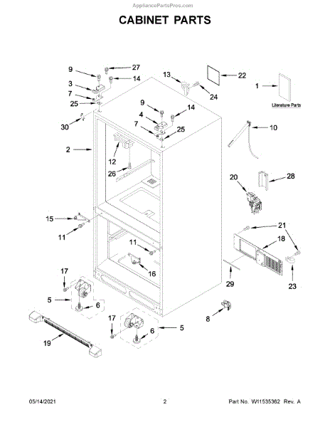 This hinge cover assembly conceals and protects the door hinge area, providing a clean look while shielding wiring and moving parts from dust and moisture. It restores proper coverage if the original cover is cracked, missing, or loose.