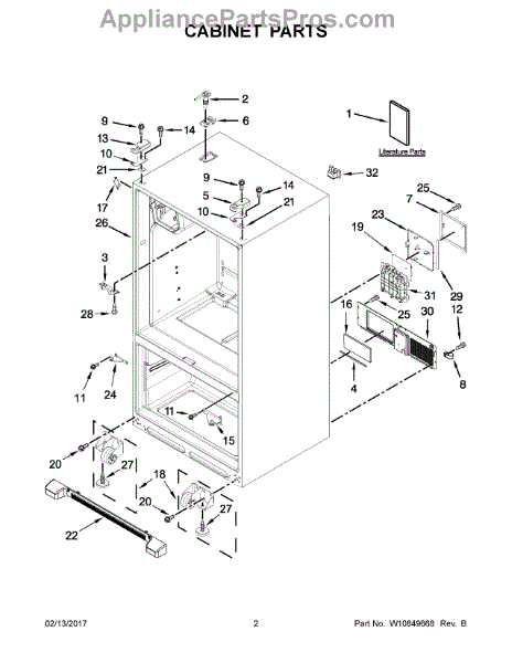 The Leveling Leg is an OEM replacement part for Whirlpool refrigerators. It is one of four legs situated internally at the base corners for proper tilt positioning. It raises or lowers each leg independently to stabilize units on uneven kitchen floors. Causes of replacement consist of wear from continual torque required during positioning processes. Thread damage or corrosion buildup attributable to floor locations over extended use necessitates periodic renewal as well. Symptoms involve: