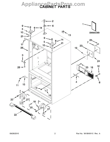 Replace your refrigerator's corner cover cap if it's cracked, broken, or missing. This cosmetic trim piece installs on the refrigerator body for a finished look.