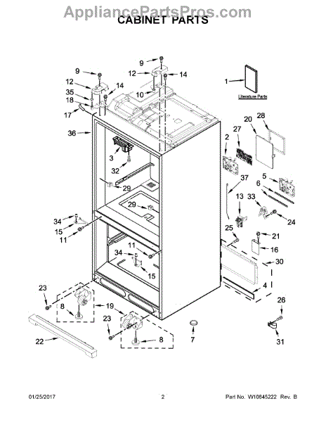 The Leveling Leg is an OEM replacement part for Whirlpool refrigerators. It is one of four legs situated internally at the base corners for proper tilt positioning. It raises or lowers each leg independently to stabilize units on uneven kitchen floors. Causes of replacement consist of wear from continual torque required during positioning processes. Thread damage or corrosion buildup attributable to floor locations over extended use necessitates periodic renewal as well. Symptoms involve: