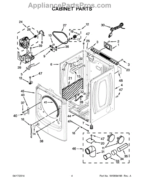 This exhaust pipe routes exhaust air from the appliance to the home vent, restoring proper airflow for safe, efficient operation. Use when the original pipe is cracked, bent, or leaking. What it does: