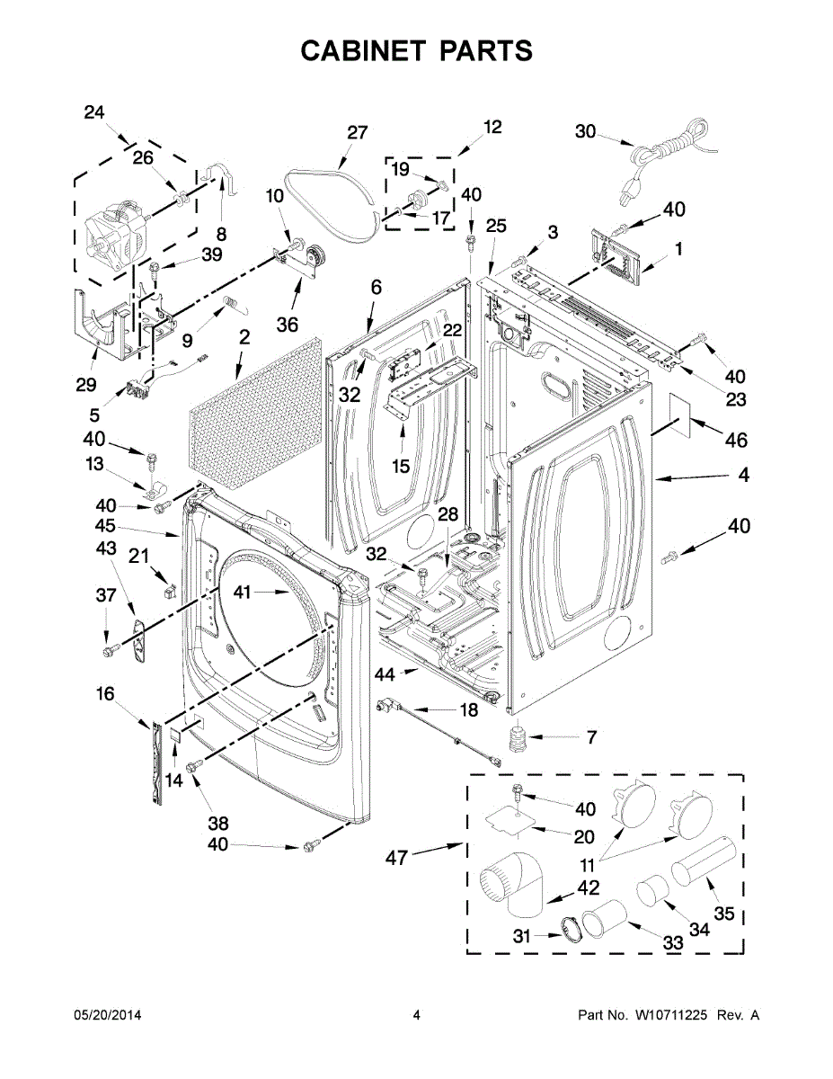 This exhaust cover plate protects and finishes the dryer's exhaust outlet, helping direct airflow and keeping the vent opening sealed from debris. It provides a clean, durable surface where the exhaust connects to the dryer cabinet. What it does: