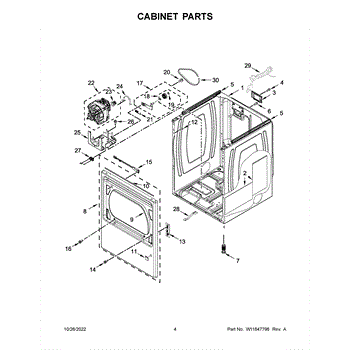 Cabinet housing for dryers. This outer shell encases internal components. Replace if cracked, rusted, dented, or structurally damaged from impact or wear.