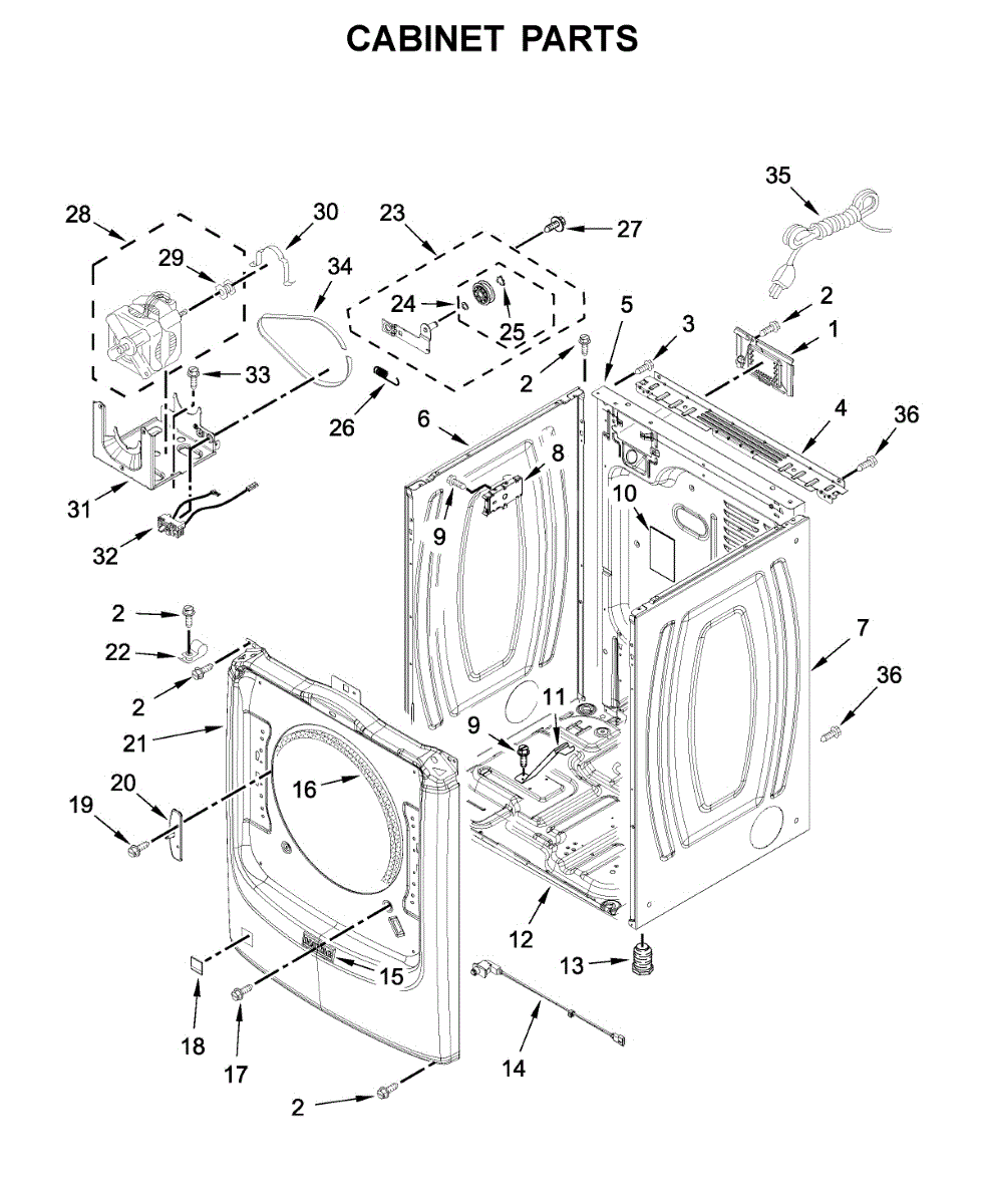 This rear bracket secures the dryer's rear panel and helps align internal components for stable operation. It restores proper fit and support when the original bracket is bent, broken, or missing. What it does:
