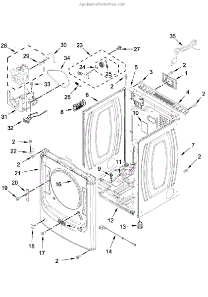 This rear bracket secures the dryer's rear panel and helps align internal components for stable operation. It restores proper fit and support when the original bracket is bent, broken, or missing. What it does: