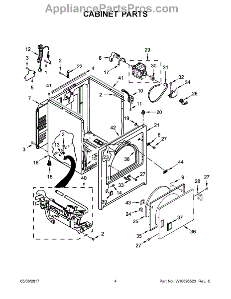 Causes of a bad door catch can include wear and tear of the plastic tang and spring from years of repeated opening and closing of the dryer door. Over time, this limits its ability to fully engage and latch securely.