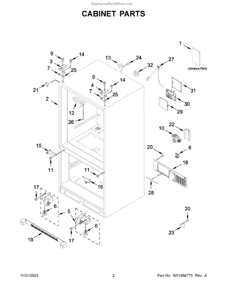 The Front Grille is an OEM replacement part for Whirlpool refrigerators. It is a decorative grille situated at the front bottom of the refrigerator that serves an important role in airflow. The grille allows for ventilation while protecting interior components from collecting dust and debris. Causes of a bad grille can be prolonged exposure to dirt and contaminants preventing proper ventilation, or damage from impact that deforms or cracks the grille structure. Symptoms of a bad grille include: