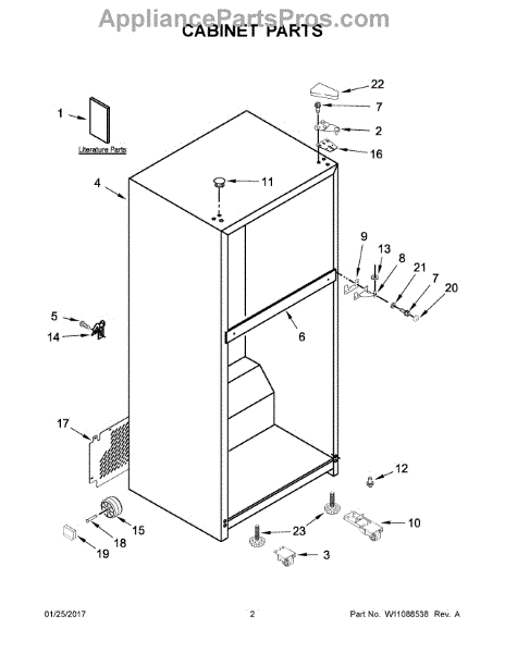 The Hinge Washer is an OEM replacement part for Whirlpool refrigerators. This small washer plays a supports the refrigerator door hinge assembly. Center hinge plastic washer. Causes of a bad hinge washer are generally normal wear and tear from extensive use. As the washer absorbs pressure each time the door is opened or closed, it can gradually deteriorate or crack. Physical damage is also possible if the door is accidentally struck or slammed. Symptoms of a worn or damaged hinge washer include: