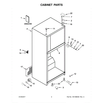 The Hinge Washer is an OEM replacement part for Whirlpool refrigerators. This small washer plays a supports the refrigerator door hinge assembly. Center hinge plastic washer. Causes of a bad hinge washer are generally normal wear and tear from extensive use. As the washer absorbs pressure each time the door is opened or closed, it can gradually deteriorate or crack. Physical damage is also possible if the door is accidentally struck or slammed. Symptoms of a worn or damaged hinge washer include: