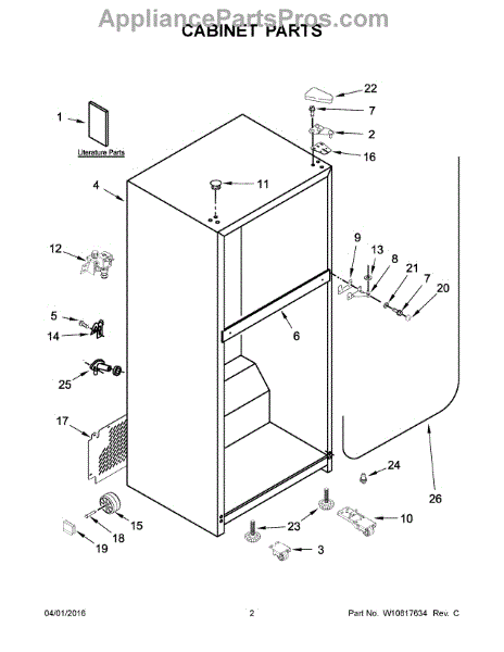 The Hinge Washer is an OEM replacement part for Whirlpool refrigerators. This small washer plays a supports the refrigerator door hinge assembly. Center hinge plastic washer. Causes of a bad hinge washer are generally normal wear and tear from extensive use. As the washer absorbs pressure each time the door is opened or closed, it can gradually deteriorate or crack. Physical damage is also possible if the door is accidentally struck or slammed. Symptoms of a worn or damaged hinge washer include: