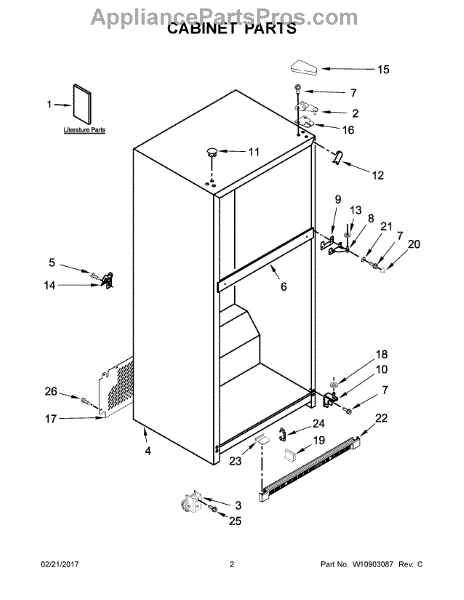 The Hinge Washer is an OEM replacement part for Whirlpool refrigerators. This small washer plays a supports the refrigerator door hinge assembly. Center hinge plastic washer. Causes of a bad hinge washer are generally normal wear and tear from extensive use. As the washer absorbs pressure each time the door is opened or closed, it can gradually deteriorate or crack. Physical damage is also possible if the door is accidentally struck or slammed. Symptoms of a worn or damaged hinge washer include: