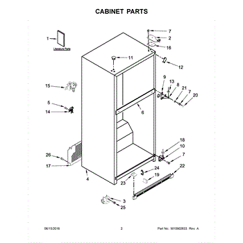 The Hinge Washer is an OEM replacement part for Whirlpool refrigerators. This small washer plays a supports the refrigerator door hinge assembly. Center hinge plastic washer. Causes of a bad hinge washer are generally normal wear and tear from extensive use. As the washer absorbs pressure each time the door is opened or closed, it can gradually deteriorate or crack. Physical damage is also possible if the door is accidentally struck or slammed. Symptoms of a worn or damaged hinge washer include: