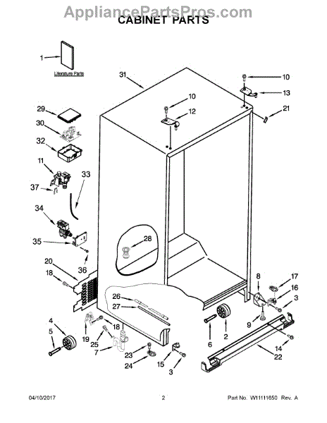 The Leveling Leg is an OEM replacement part for Whirlpool refrigerators. It is one of four legs situated internally at the base corners for proper tilt positioning. It raises or lowers each leg independently to stabilize units on uneven kitchen floors. Causes of replacement consist of wear from continual torque required during positioning processes. Thread damage or corrosion buildup attributable to floor locations over extended use necessitates periodic renewal as well. Symptoms involve: