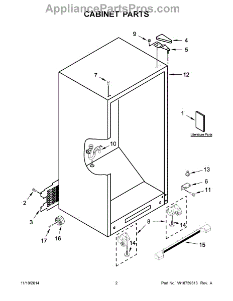 Cabinet roller axle supports refrigerator wheels for smooth movement. Replace if rollers wobble or fridge is hard to move. Verify fit with your model.