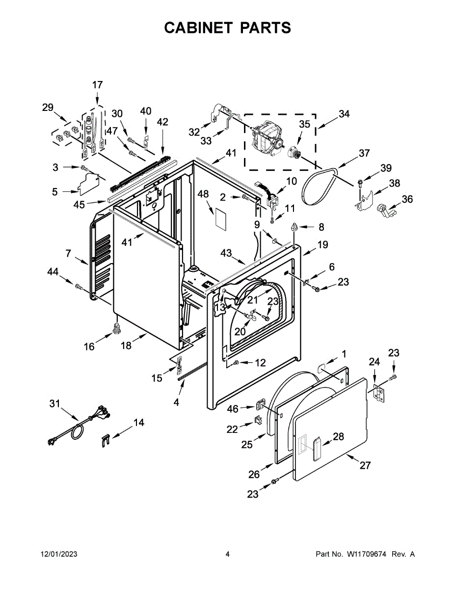 Foam seal cushions and seals dryer components to reduce vibration and prevent air leaks. Replace if worn, cracked, compressed, or missing.