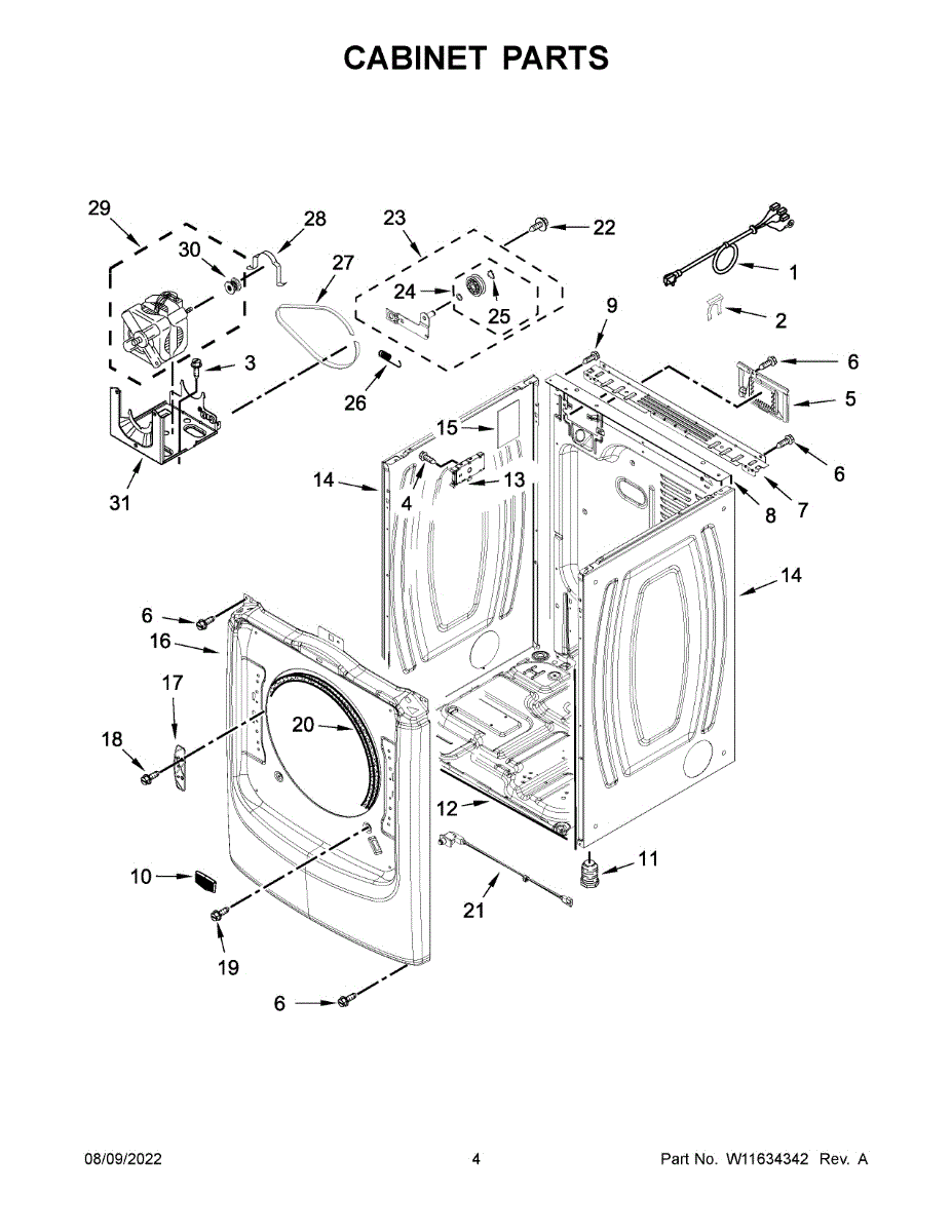 Secures panels, brackets, and trim in dryers, washers, and ice makers. Replace worn, stripped, or missing screws to restore proper fit and alignment.