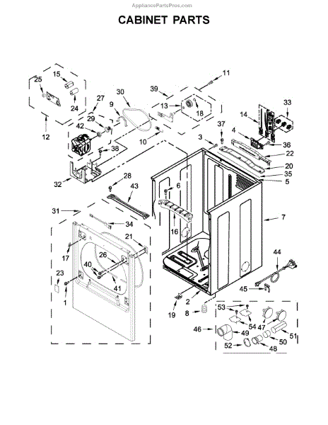 This lower cabinet base replaces a worn or damaged support panel that stabilizes the appliance and houses lower components. Restoring the base improves cabinet alignment and helps prevent vibration and under-cabinet damage. What it does:
