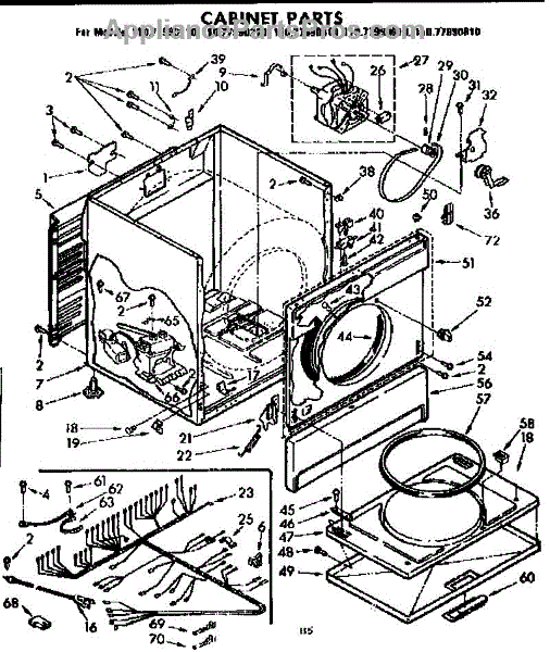 Parts for Sears 11077990610: Cabinet Parts