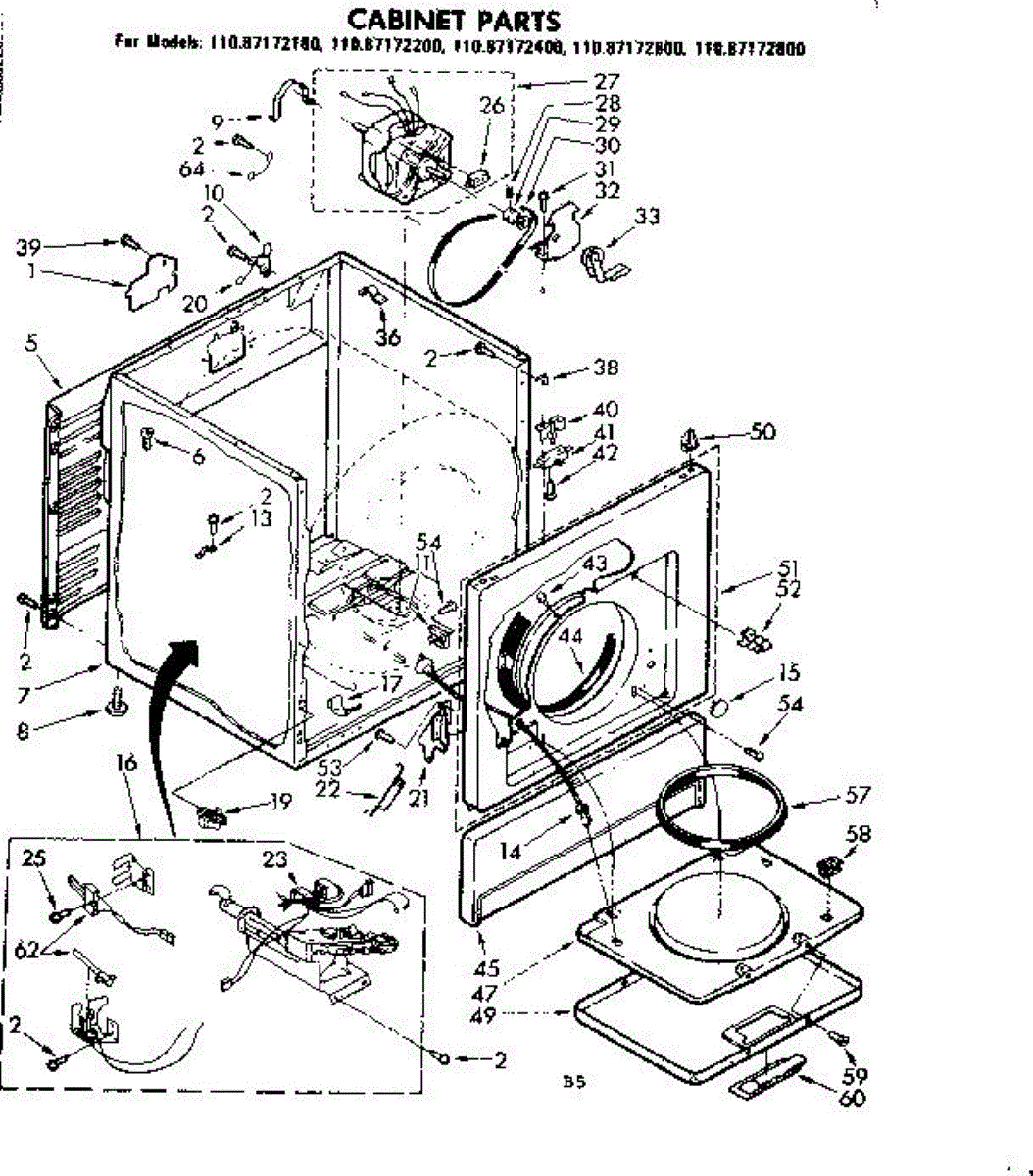 Parts for Sears 11087172200: Cabinet Parts