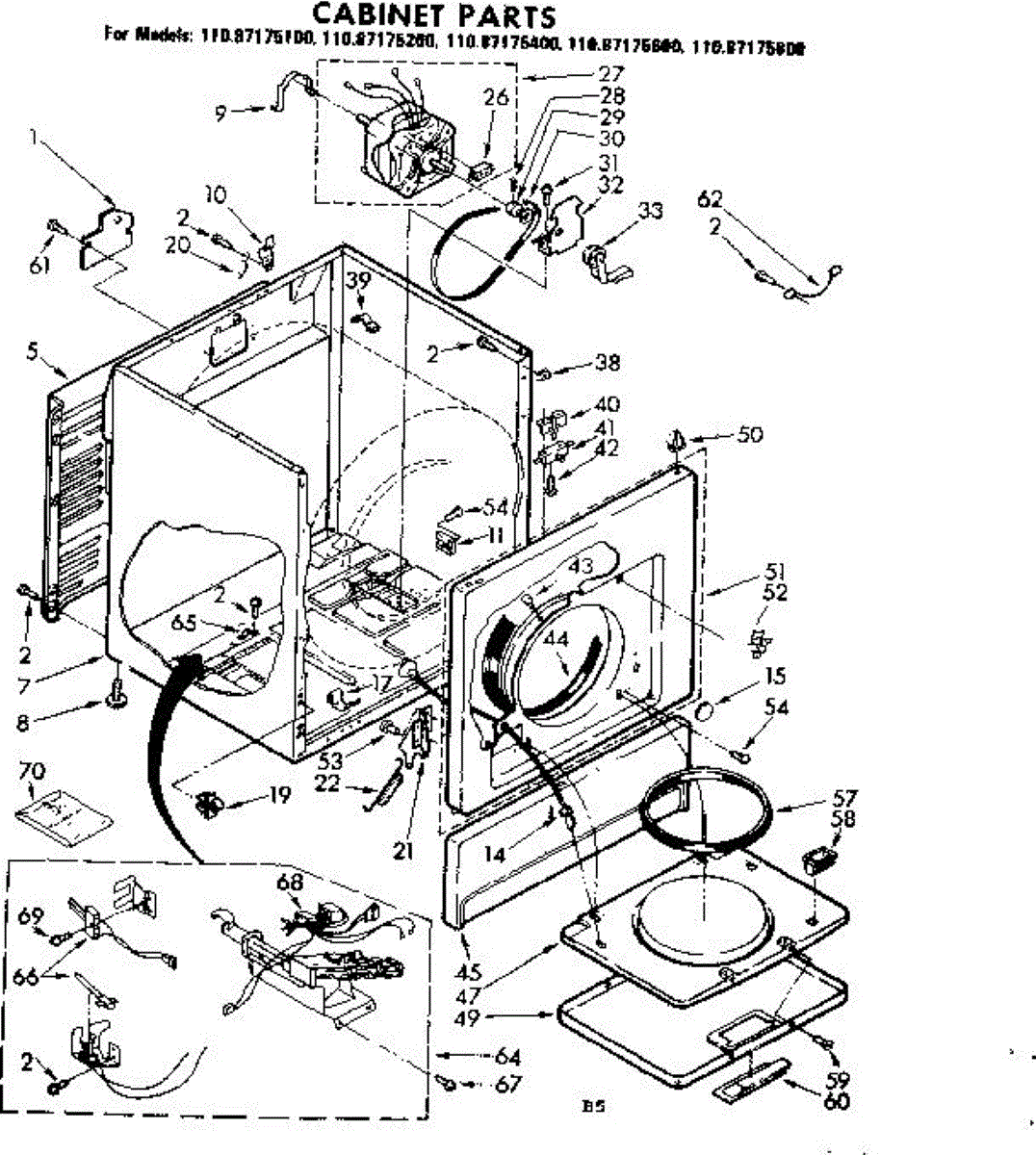 Fits all Whirlpool-made dryers (Whirlpool, Kenmore with prefix 110, Roper, KitchenAid, and Estate). Matching belt 341241 and rear support rollers 349241T. Whirlpool dryer repair manual 677818L.