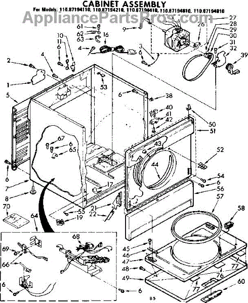 Fits all Whirlpool-made dryers (Whirlpool, Kenmore with prefix 110, Roper, KitchenAid, and Estate). Matching belt 341241 and rear support rollers 349241T. Whirlpool dryer repair manual 677818L.
