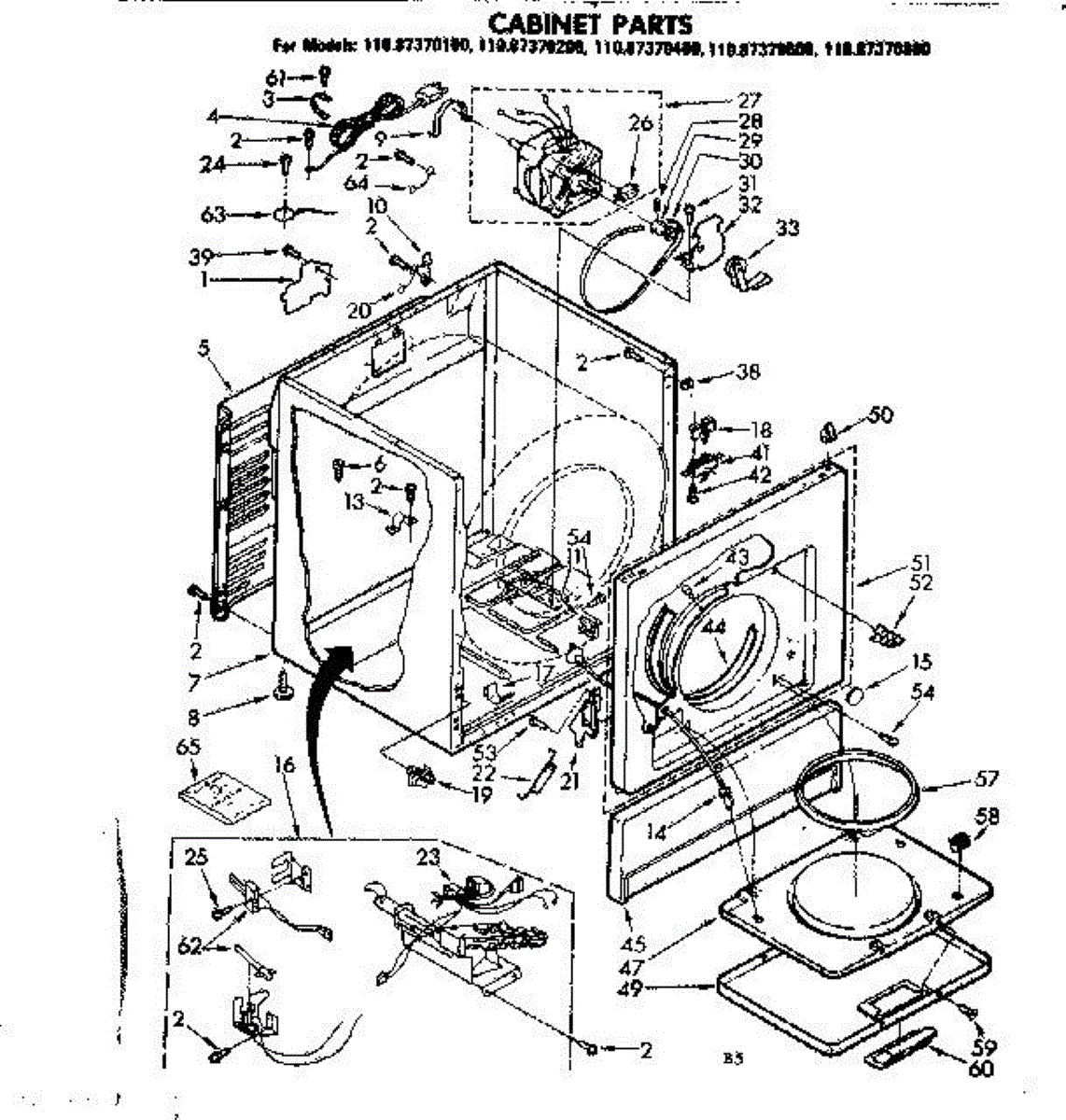 Fits all Whirlpool-made dryers (Whirlpool, Kenmore with prefix 110, Roper, KitchenAid, and Estate). Matching belt 341241 and rear support rollers 349241T. Whirlpool dryer repair manual 677818L.