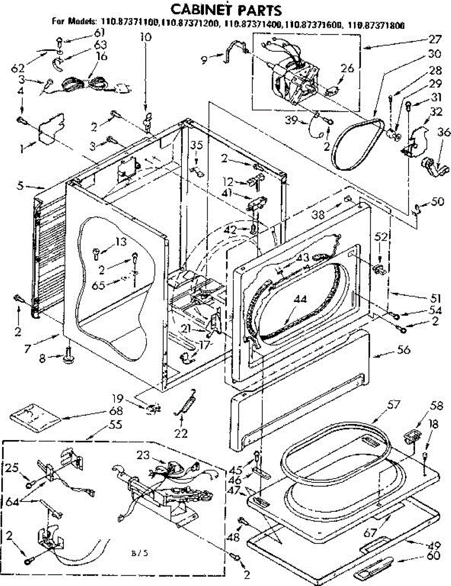 Fits all Whirlpool-made dryers (Whirlpool, Kenmore with prefix 110, Roper, KitchenAid, and Estate). Matching belt 341241 and rear support rollers 349241T. Whirlpool dryer repair manual 677818L.