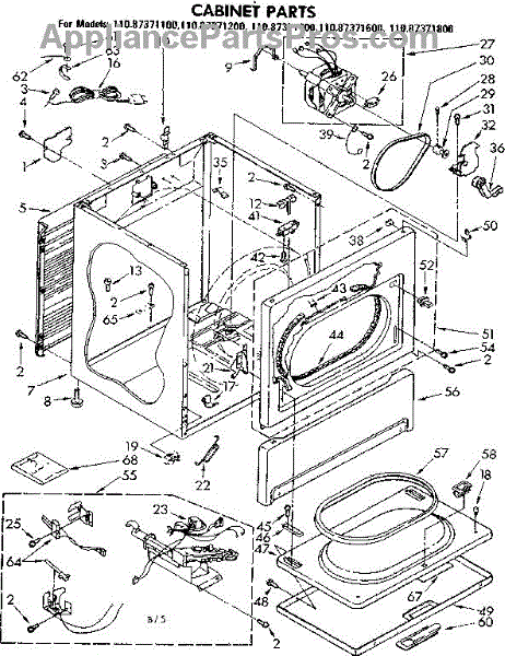Fits all Whirlpool-made dryers (Whirlpool, Kenmore with prefix 110, Roper, KitchenAid, and Estate). Matching belt 341241 and rear support rollers 349241T. Whirlpool dryer repair manual 677818L.