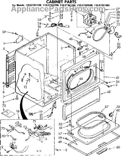 Fits all Whirlpool-made dryers (Whirlpool, Kenmore with prefix 110, Roper, KitchenAid, and Estate). Matching belt 341241 and rear support rollers 349241T. Whirlpool dryer repair manual 677818L.