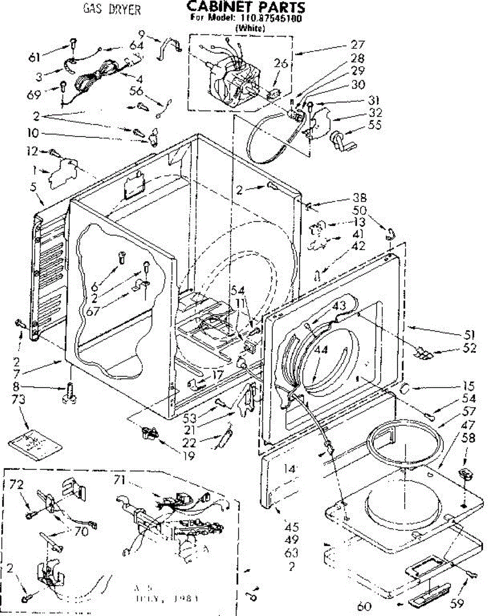 Fits all Whirlpool-made dryers (Whirlpool, Kenmore with prefix 110, Roper, KitchenAid, and Estate). Matching belt 341241 and rear support rollers 349241T. Whirlpool dryer repair manual 677818L.
