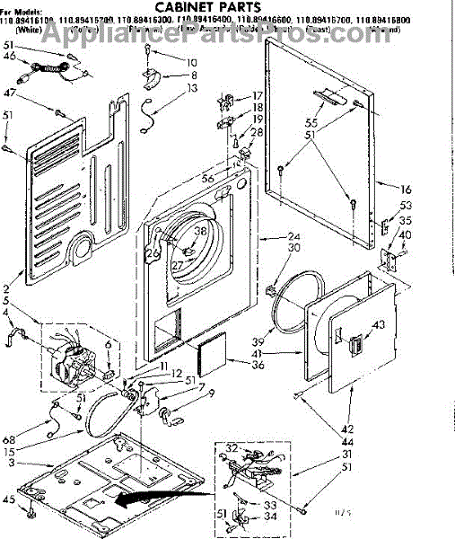 Parts for Sears 11089416100: Cabinet Parts