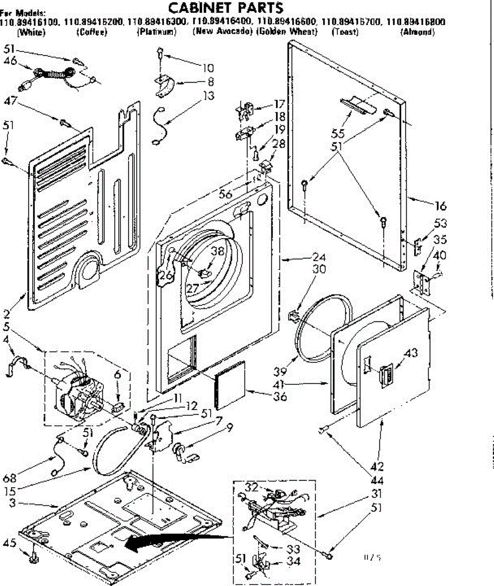 Fits all Whirlpool-made dryers (Whirlpool, Kenmore with prefix 110, Roper, KitchenAid, and Estate). Matching belt 341241 and rear support rollers 349241T. Whirlpool dryer repair manual 677818L.