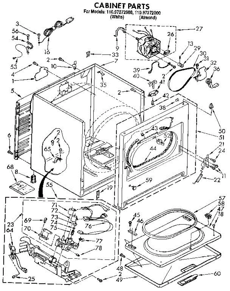 Front panel for dryers. Replaces cracked, dented, or damaged exterior panels. Installs on the front of the cabinet to restore appearance and structure.
