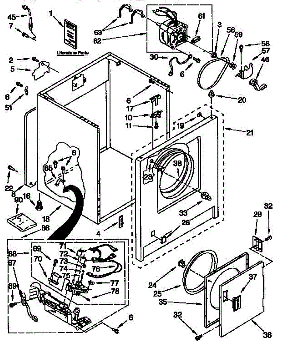 Fits all Whirlpool-made dryers (Whirlpool, Kenmore with prefix 110, Roper, KitchenAid, and Estate). Matching belt 341241 and rear support rollers 349241T. Whirlpool dryer repair manual 677818L.
