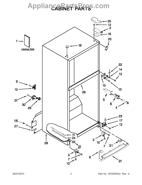 The Hinge Washer is an OEM replacement part for Whirlpool refrigerators. This small washer plays a supports the refrigerator door hinge assembly. Center hinge plastic washer. Causes of a bad hinge washer are generally normal wear and tear from extensive use. As the washer absorbs pressure each time the door is opened or closed, it can gradually deteriorate or crack. Physical damage is also possible if the door is accidentally struck or slammed. Symptoms of a worn or damaged hinge washer include: