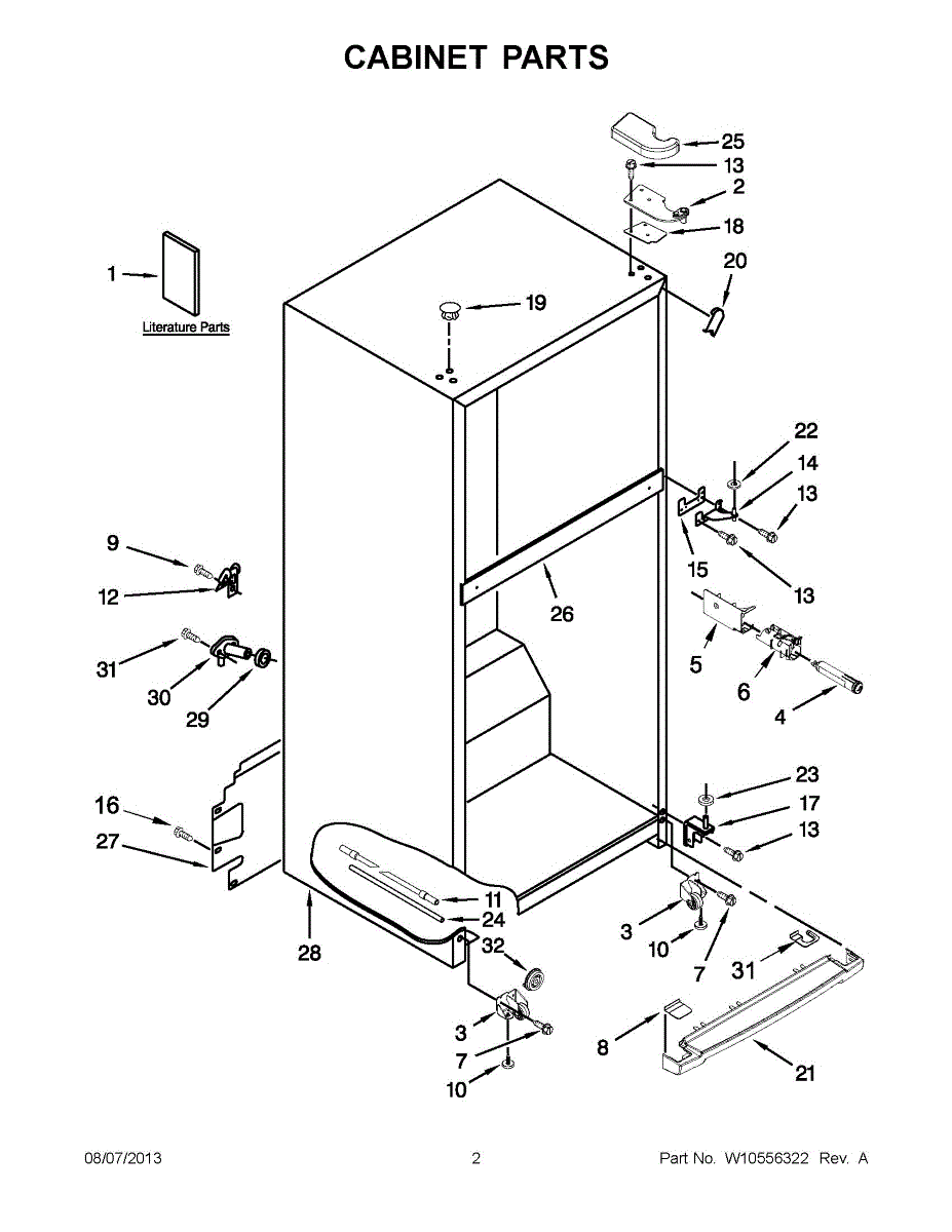 The Center Door Hinge is an OEM replacement part for Whirlpool refrigerators. As one of several hinges supporting each refrigerator door panel, it works to guide opening and closing movements. Causes of a faulty center hinge tend to be wear from years of continuous operation with near-daily door cycles. Complete failure could also occur in the event of physical damage sustained during a repair or installation issue. Symptoms include: