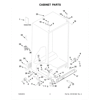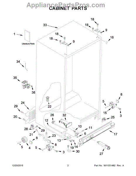 Cabinet roller axle supports refrigerator wheels for smooth movement. Replace if rollers wobble or fridge is hard to move. Verify fit with your model.