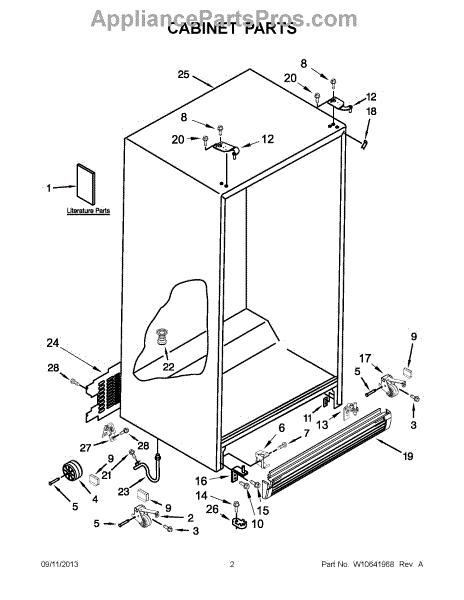 Cabinet roller axle supports refrigerator wheels for smooth movement. Replace if rollers wobble or fridge is hard to move. Verify fit with your model.