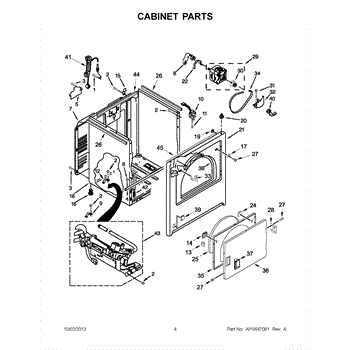 Dryer outer cabinet that houses internal components. Replace if your cabinet is rusted, dented, cracked, or damaged, compromising structural integrity.