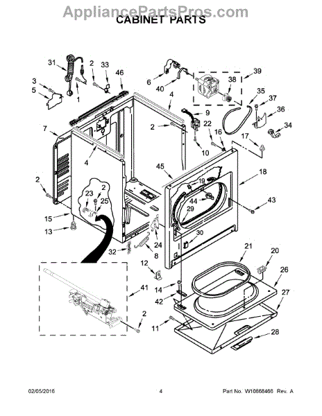 Dryer outer cabinet that houses internal components. Replace if your cabinet is rusted, dented, cracked, or damaged, compromising structural integrity.