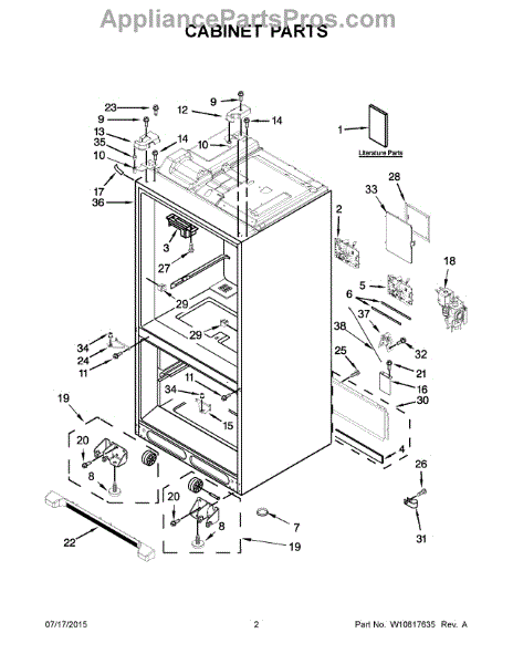 The Leveling Leg is an OEM replacement part for Whirlpool refrigerators. It is one of four legs situated internally at the base corners for proper tilt positioning. It raises or lowers each leg independently to stabilize units on uneven kitchen floors. Causes of replacement consist of wear from continual torque required during positioning processes. Thread damage or corrosion buildup attributable to floor locations over extended use necessitates periodic renewal as well. Symptoms involve: